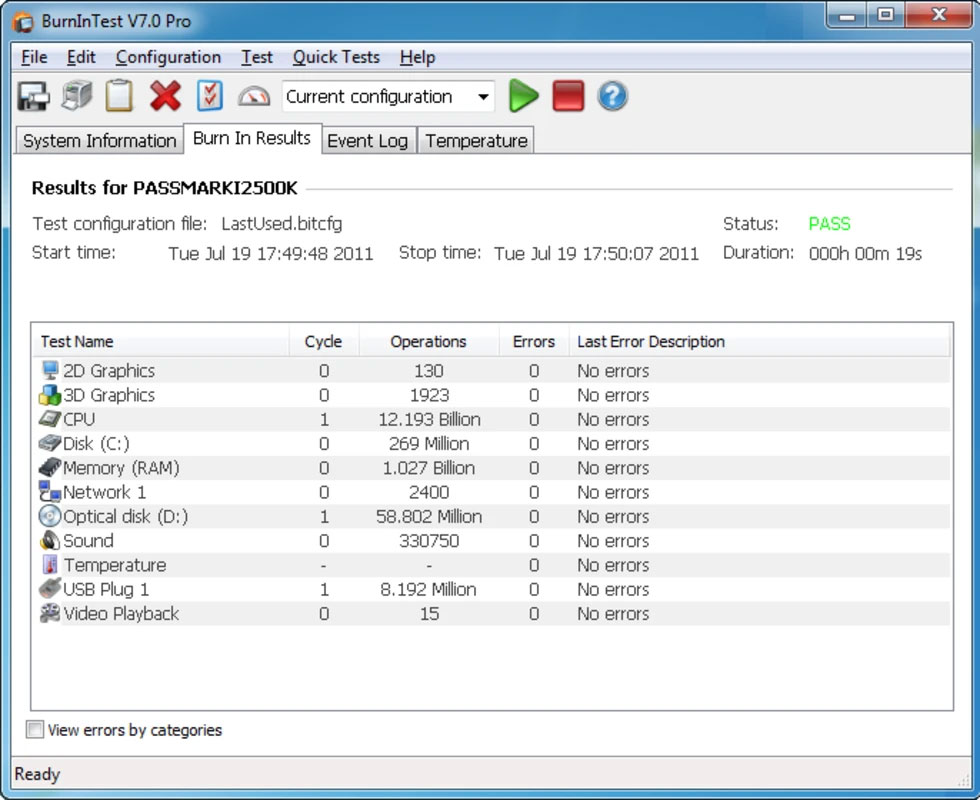 واجهة برنامج BurnInTest Professional للكمبيوتر ويندوز